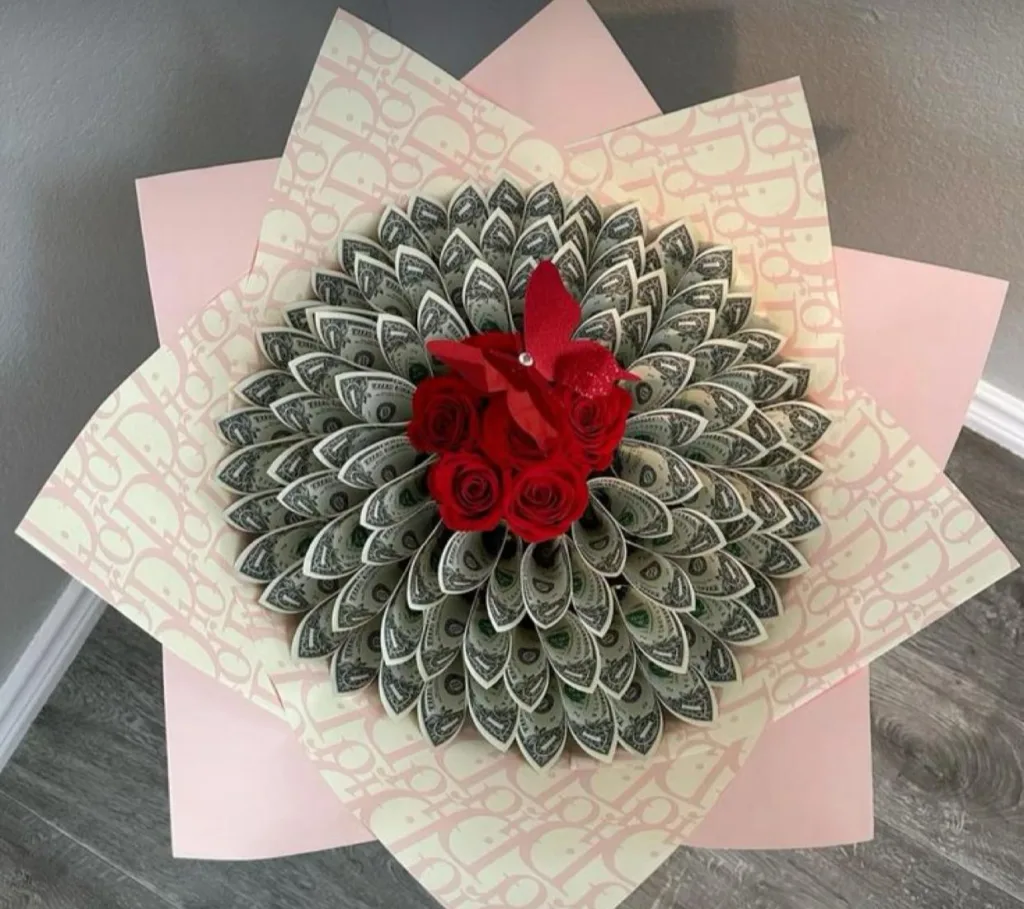 billetes arreglos de flores con dinero
