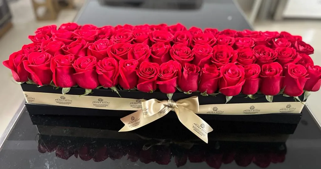 Caja rectangular con 60 rosas premium mas 15: 420.500