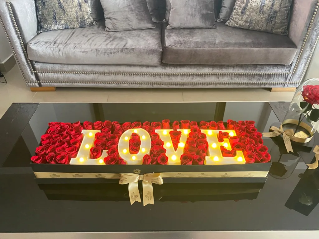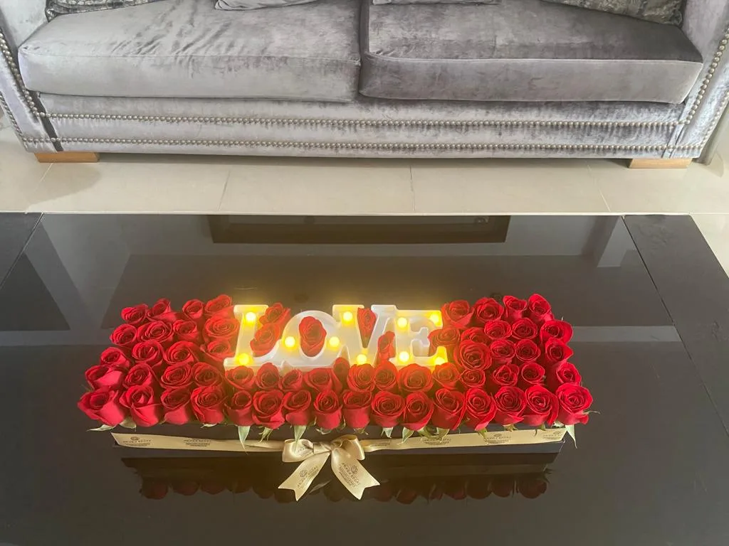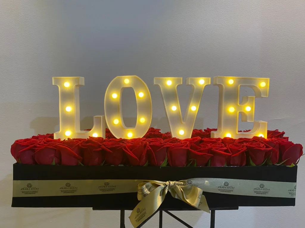 Caja rectangular grande con 75 rosas premium mas LOVE: 510.750