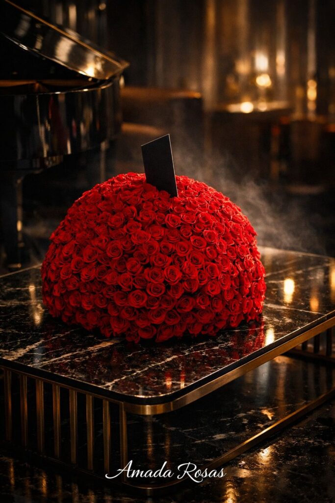 Caja redonda mediana plana con 30 a 35 rosas premium: 255.750